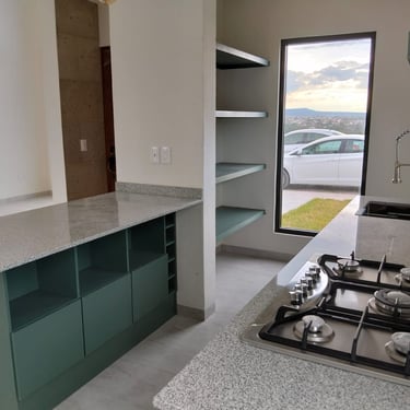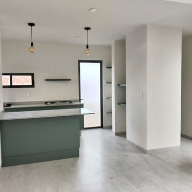 Sala y comedor con doble altura (ambiente amplio e iluminado)