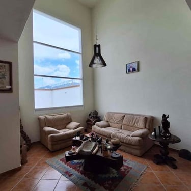 Sala con doble altura, muy iluminada