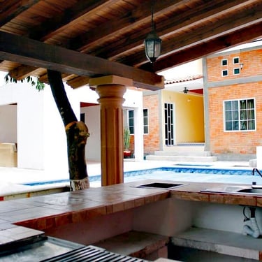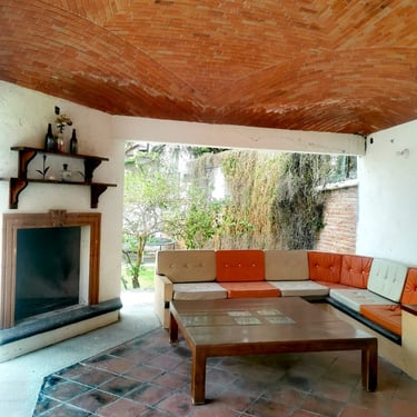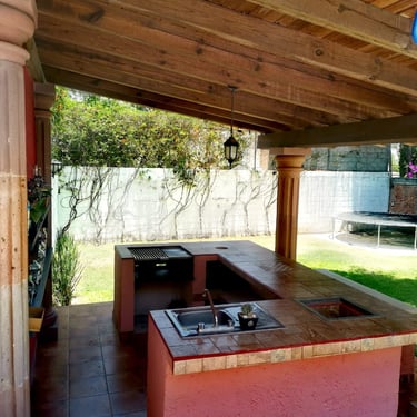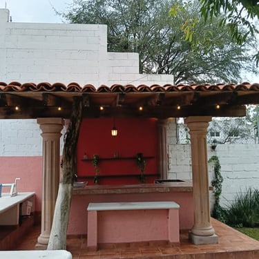 Terraza con chimenea y asador de carbón