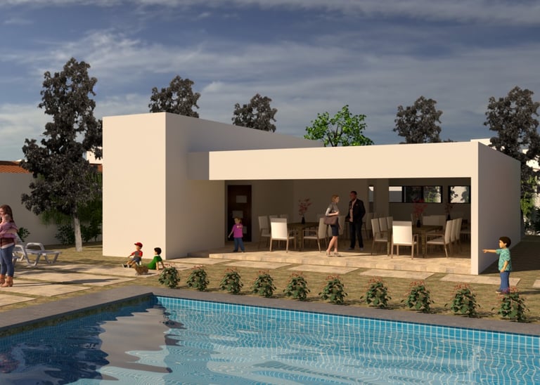 Moderna casa de una planta, con diseño contemporáneo, excelentes acabados y ubicación privilegiada a solo 5 minutos del centro de Tequisquiapan, junto al Club de Golf Tequisquiapan.
